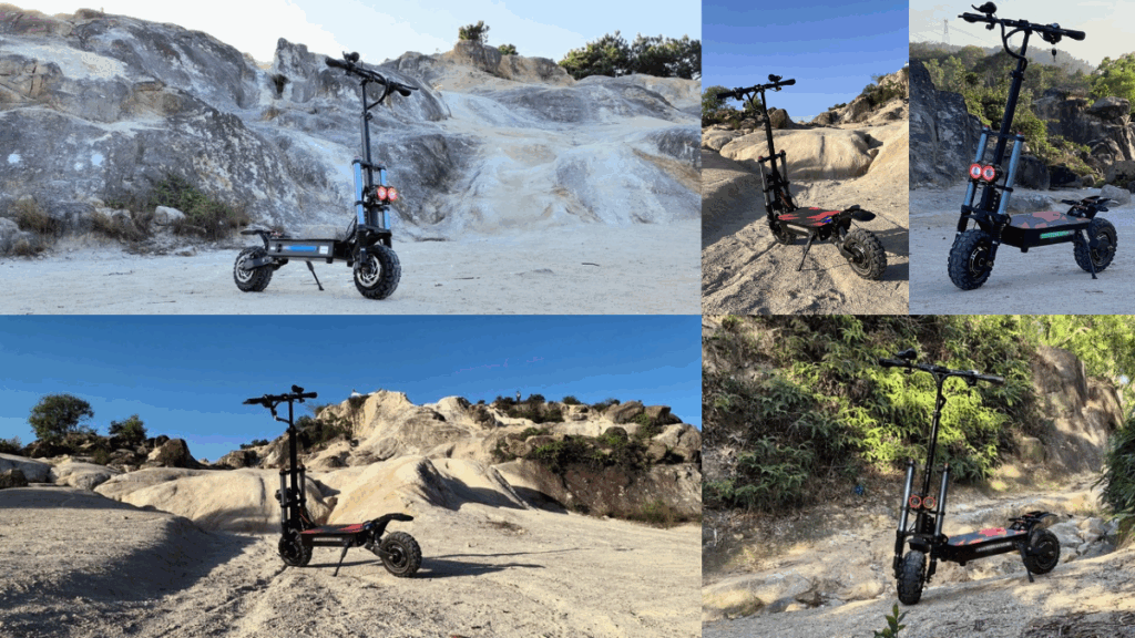 Pentru cei care doresc o trotinetă cu capacități mai bune pe teren variat, ARWIBON GT08 oferă motor DUAL de 5600 W, tracțiune 2×2 și o autonomie de până la 65 km. Viteza maximă este de aproximativ 85 km/h, iar roțile 11″ și structura solidă o fac potrivită și pentru drumuri neasfaltate sau trasee mixte.