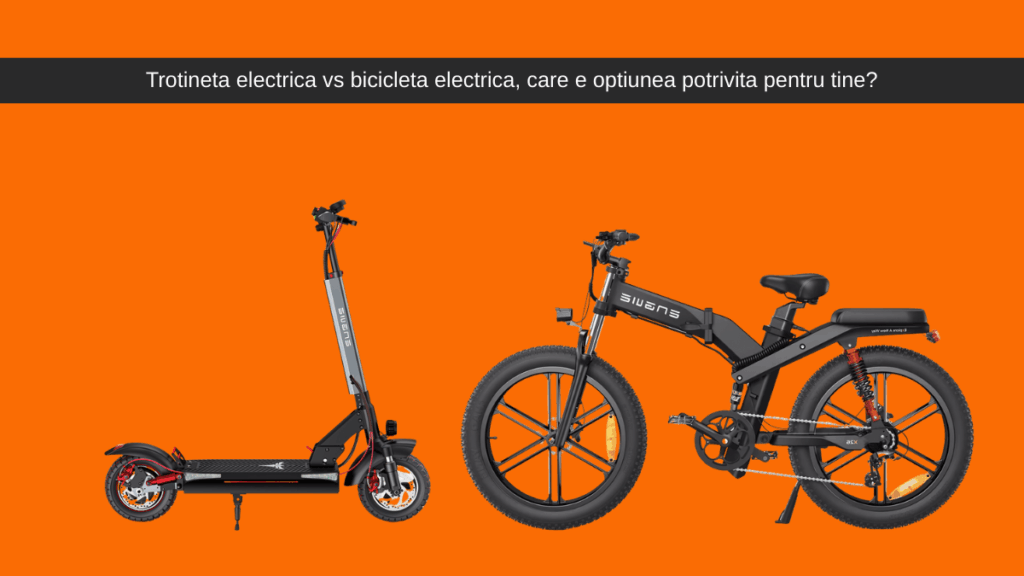 Trotinetele și bicicletele electrice se diferențiază prin design, performanță, autonomie și confort, iar alegerea între ele poate fi dificilă pentru utilizatorii începători sau pentru cei care doresc să facă naveta zilnic în oraș. În timp ce trotinetele electrice sunt apreciate pentru portabilitatea și manevrabilitatea lor, bicicletele electrice oferă stabilitate, autonomie mai mare și confort pe distanțe lungi.